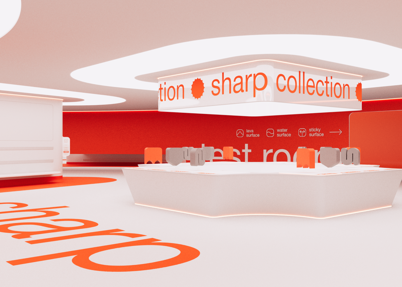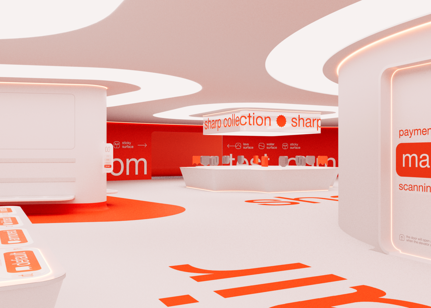 основное пространство делится на четыре тематические зоны, каждая из которых представляет определённую коллекцию: sharp, soft, air и power
